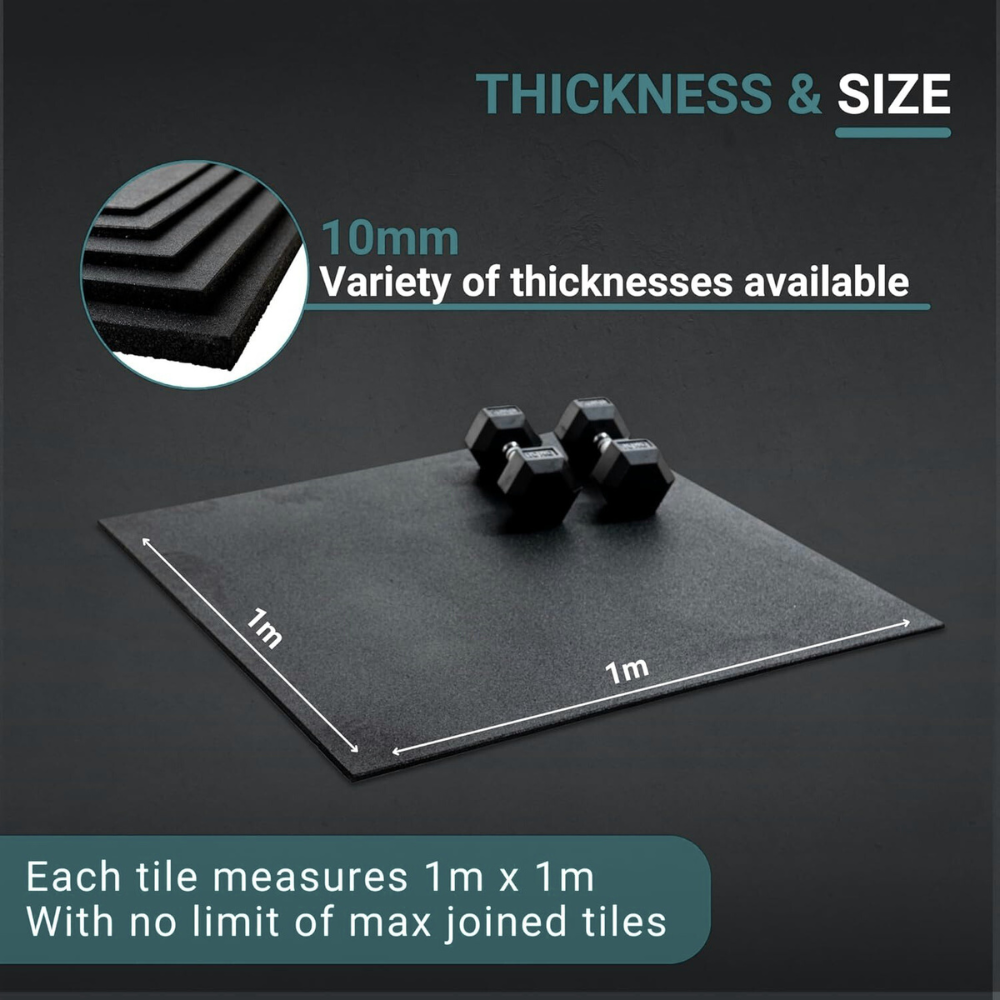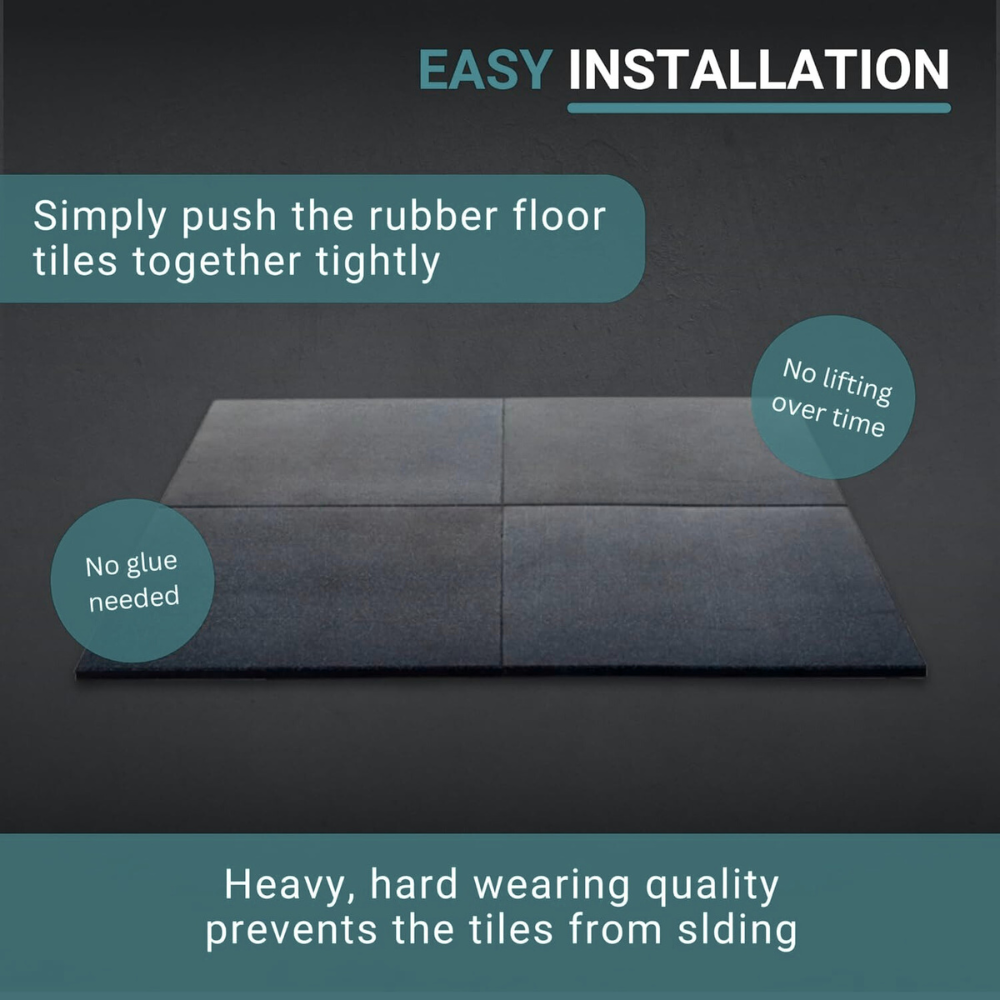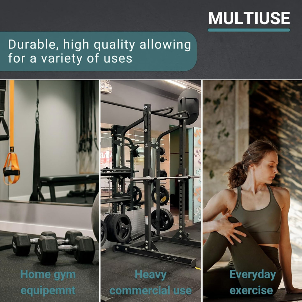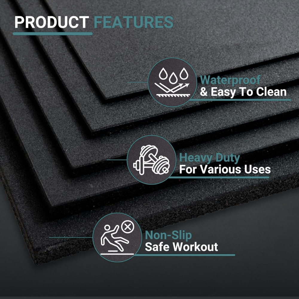 Commercial Quality at Home Prices: Our SBR rubber flooring meets commercial gym standards while remaining affordable for home users. The heavy weight (9.5kg - 34kg per mat) ensures stability without adhesives.
